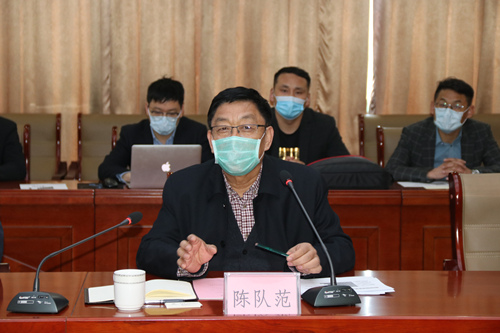 董事長陳隊(duì)范向崔京建主任介紹實(shí)訓(xùn)基地情況