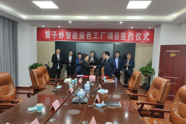 4月13日,棗莊康平納筒子紗智能染色工廠項(xiàng)目正式簽約儀式在棗莊市高新區(qū)隆重舉行。棗莊市高新區(qū)黨工委書(shū)記王廣部,高新區(qū)管委會(huì)副主任張沖,投資促進(jìn)局局長(zhǎng)馮振,投資促進(jìn)局副局長(zhǎng)王保忠,康平納集團(tuán)董事長(zhǎng)陳隊(duì)范,副總經(jīng)理劉繼萍,董事長(zhǎng)助理陳卉、范偉、史新強(qiáng)出席簽約儀式。
